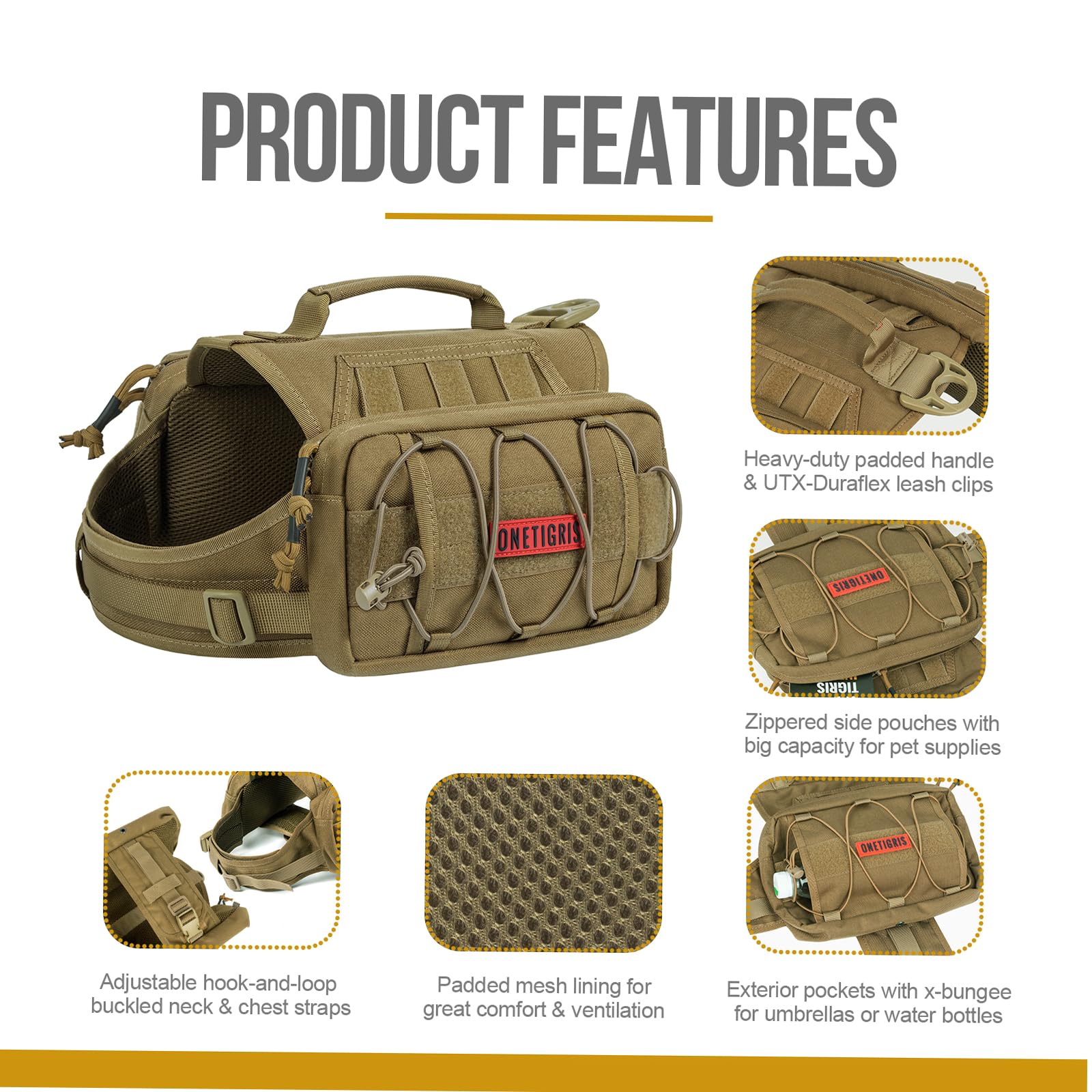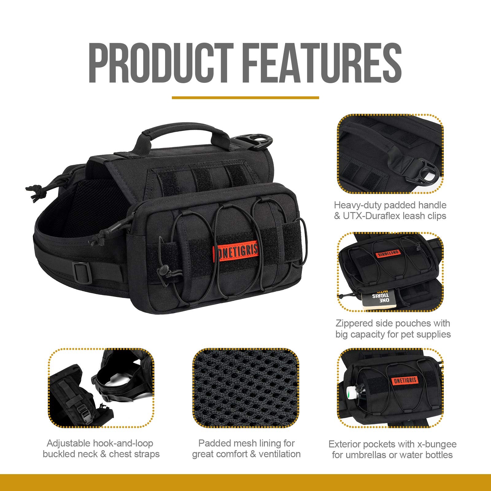- OneTigris MAMMOTH Dog Pack: Durable 1000D nylon with mesh lining for breathability to maximize function and comfort on lengthier outings