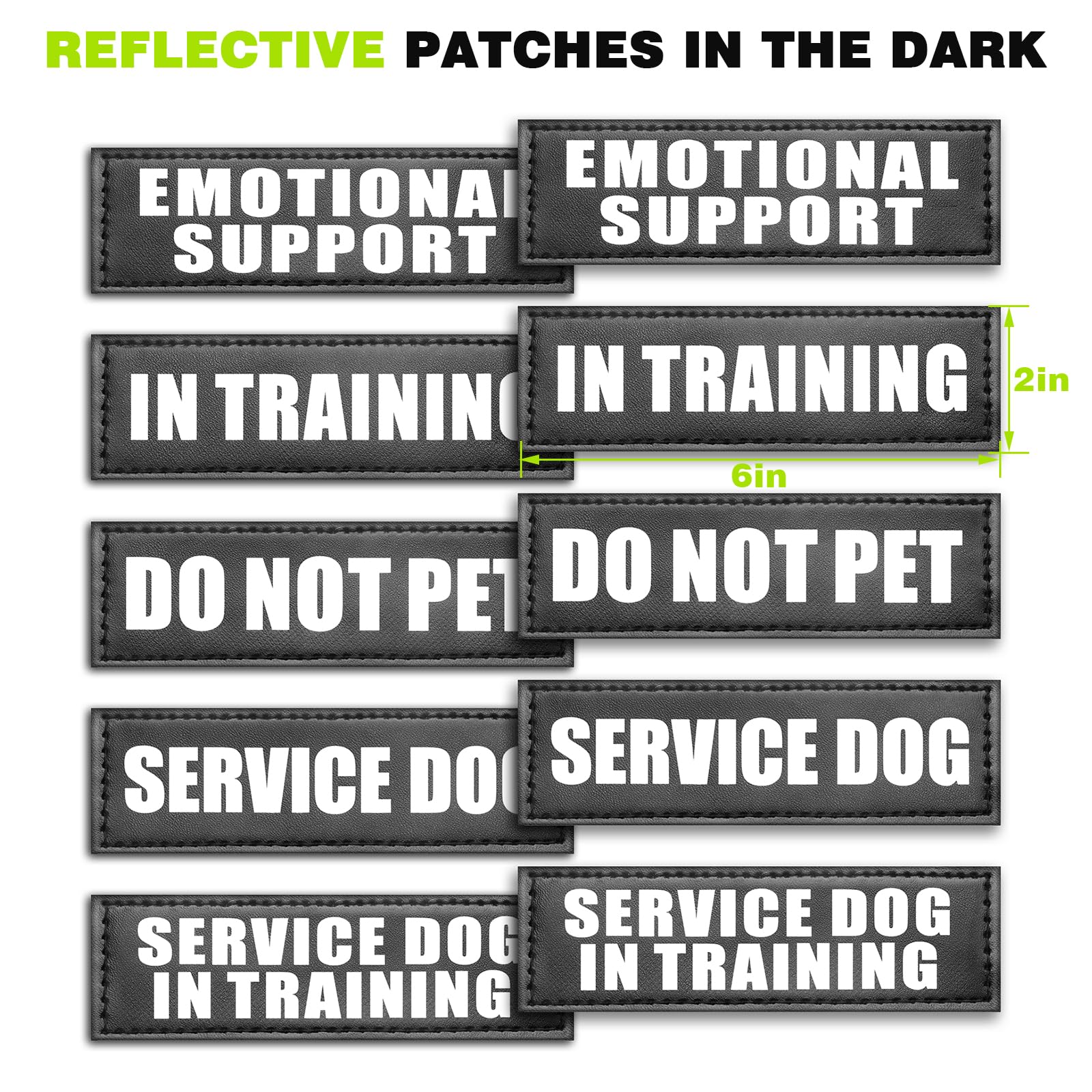 - 【Molle System】: Equipped on both sides for pouches, water bottles, and tactical dog gear. Multiple Hook & Loop Panels for morale patches and badges to showcase your dog’s personality. A wide range of use for personal service, law enforcement, or outdoor recreation. The package contains a dog harness, and 10 pieces of dog patches, such as Service dog, do not pet, in training, emotional support and service dog in training, enough quantity for you to decorate the dog’s vest harness.